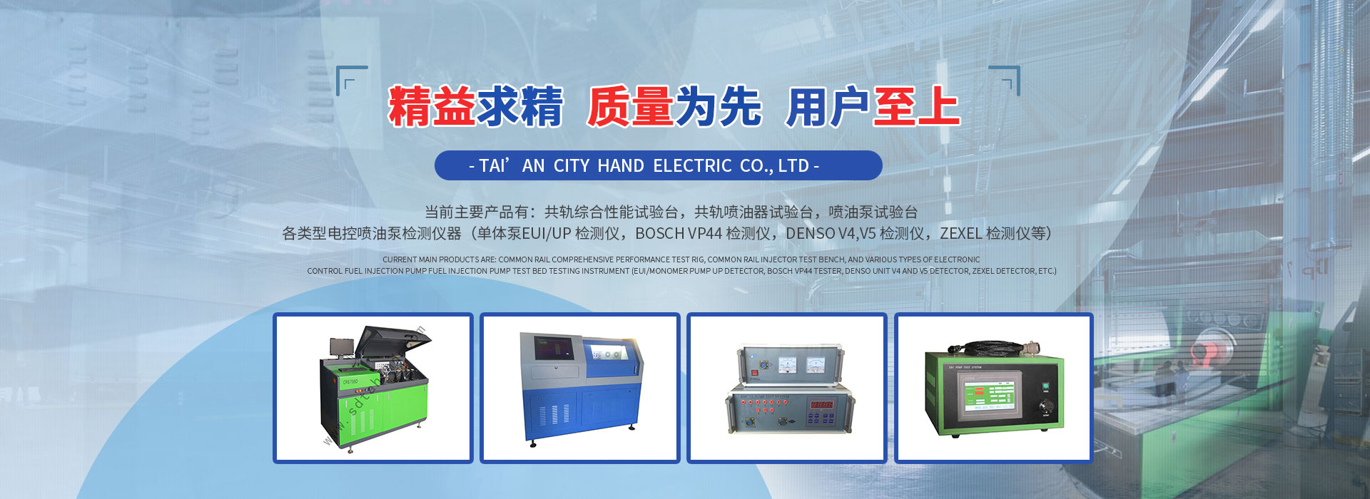 泰安市漢德電氣有限責(zé)任公司是設(shè)計、制造和生產(chǎn)內(nèi)燃機檢測試驗設(shè)備的企業(yè),集生產(chǎn)制造、配件銷售為一體。隨著全球環(huán)境對環(huán)保要求的日益提高,內(nèi)燃機技術(shù)相應(yīng)取得長足進(jìn)步,尤其是柴油機噴射系統(tǒng)正向著高壓、電控技術(shù)的方向迅猛發(fā)展,基于此,我們公司目前著力開發(fā)、拓展專門針對于高壓共軌系統(tǒng)和其他電控噴射系統(tǒng)的檢測設(shè)備,當(dāng)前主要產(chǎn)品有:共軌綜合性能試驗臺,共軌噴油器試驗臺,噴油泵試驗臺,各類型電控噴油泵檢測儀器...